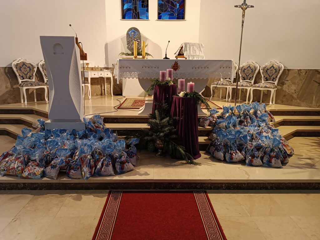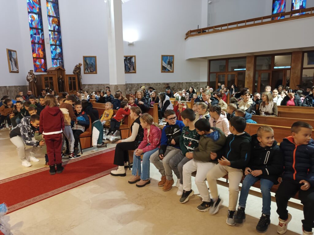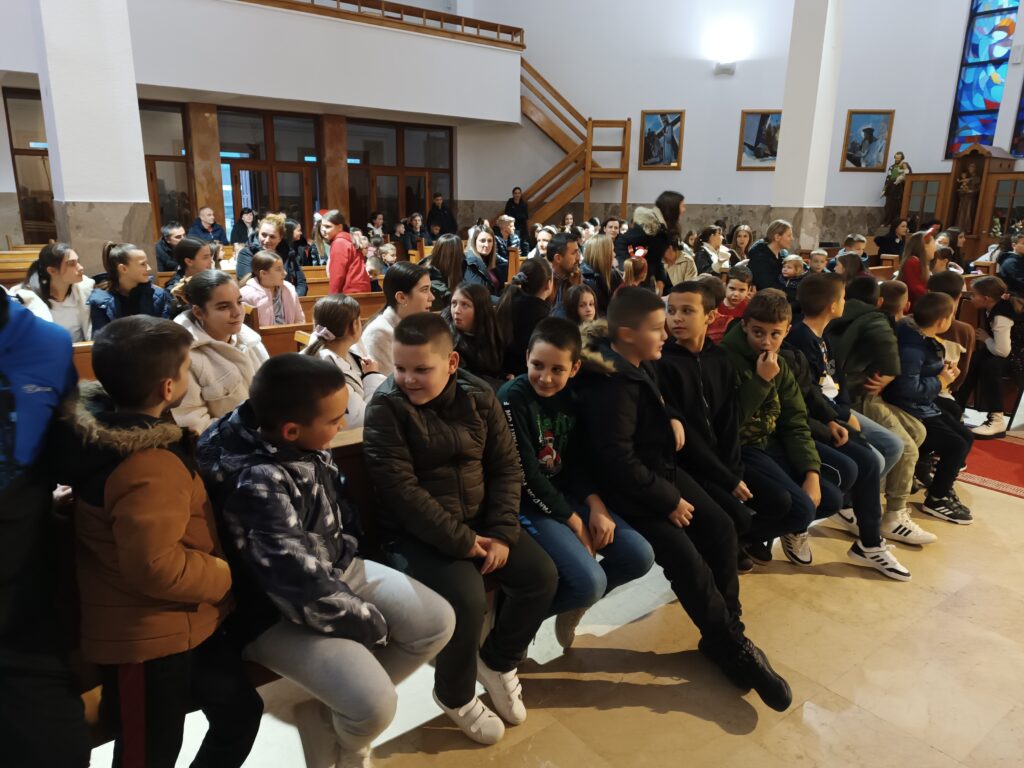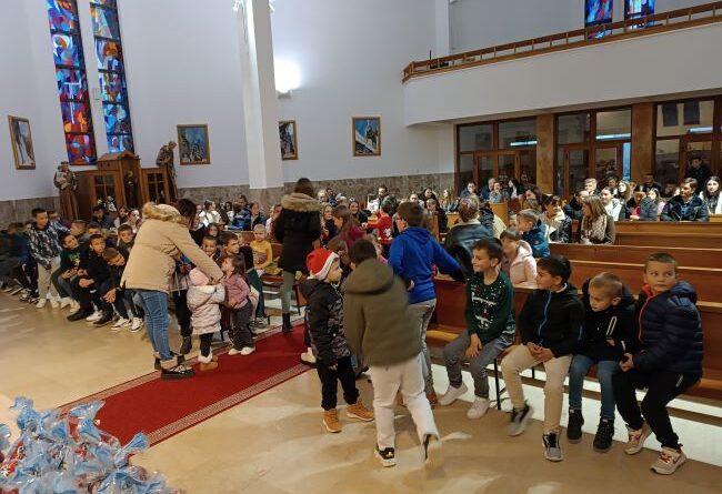 I ove godine smo na blagdan sv. Nikole, 6. prosinca, u našoj župi upriličili kratki program i podjelu darova djeci iz cijele župe. Stotinjak djece, dio kojih je bio u pratnji roditelja, u 16 sati došli su u župnu crkvu gdje ih je posjetio sv. Nikola. Nakon što je saznao da su svi bili dobri od posljednjeg njegova dolaska, svima je podijelio prigodne darove. Evo nekoliko fotografija s toga događaja.