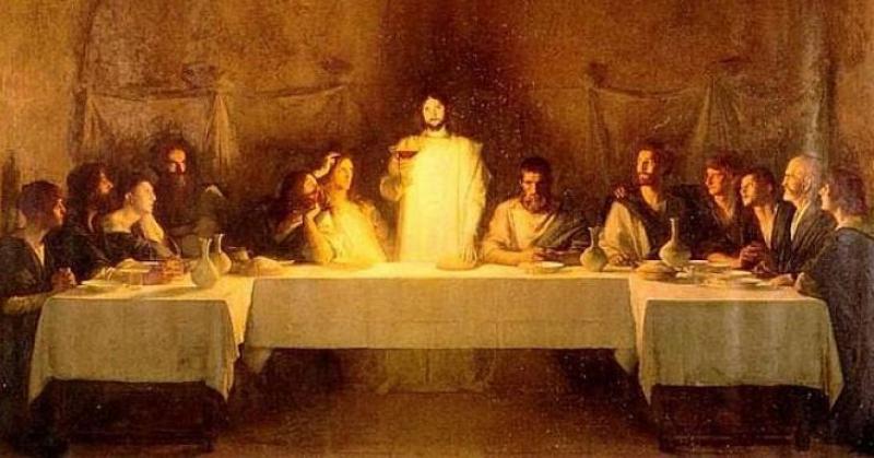 Na Posljednjoj večeri Isus je sakramentalno prihvatio svoju žrtvu smrti na križu: predao se u smrt radi spasenja ljudi, ispunivši Stari zavjet i židovski obred, dajući svoje tijelo i krv umjesto jaganjca i tako zapečatio konačni i vječni savez. Njegova muka na Maslinskoj gori, predanje njegovim neprijateljima, uhićenje te iste večeri pravi je početak Isusove muke.
